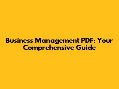 Business Management PDF: Your Comprehensive Guide