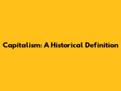 Capitalism: A Historical Definition