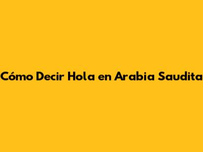 Cómo Decir Hola En Arabia Saudita