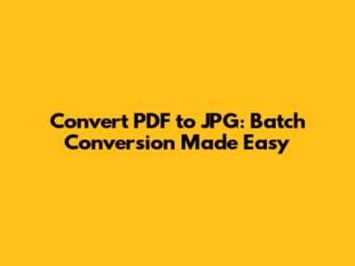 Convert PDF To JPG: Batch Conversion Made Easy