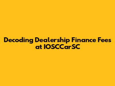 Decoding Dealership Finance Fees At IOSCCarSC