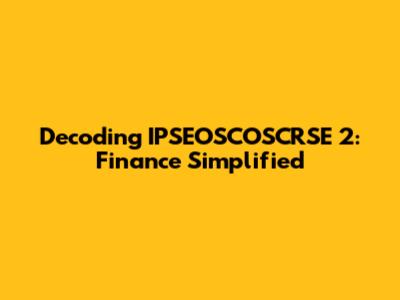 Decoding IPSEOSCOSCRSE 2: Finance Simplified