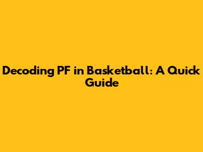 Decoding PF In Basketball: A Quick Guide