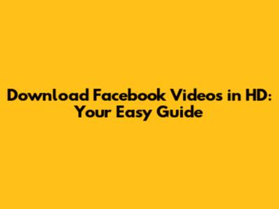 Download Facebook Videos In HD: Your Easy Guide