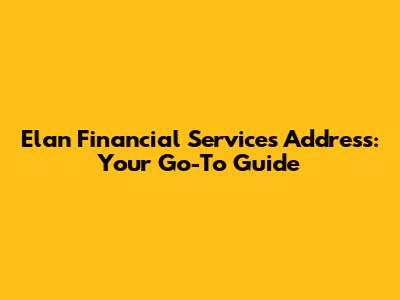 Hey there, finance enthusiasts! Ever found yourself scratching your head, wondering about the Elan Financial Services address? Well, you're in the right place! We're diving deep into the world of Elan, figuring out where they're located, and what you might need to know about getting in touch. Whether you're a seasoned customer or just curious, this guide is your ultimate resource. We'll explore everything from their main headquarters to the best ways to reach out, covering all the essential details. Ready to unlock the secrets of Elan's address and beyond? Let's jump in!