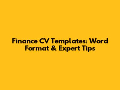 Finance CV Templates: Word Format & Expert Tips