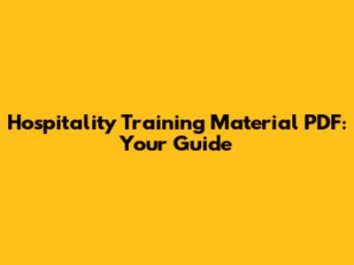 Hospitality Training Material PDF: Your Guide