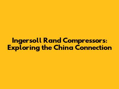 Ingersoll Rand Compressors: Exploring The China Connection