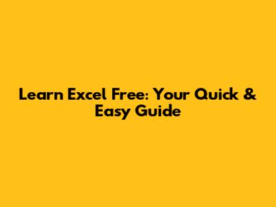 Learn Excel Free: Your Quick & Easy Guide