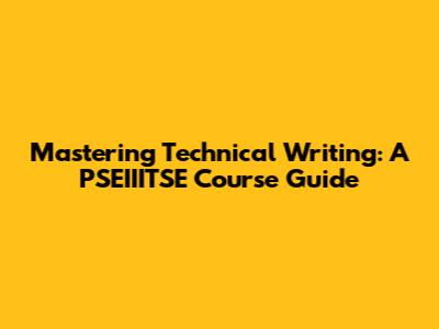 Mastering Technical Writing: A PSEIIITSE Course Guide