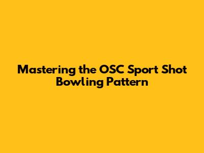 Mastering The OSC Sport Shot Bowling Pattern