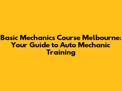 Why Choose a Basic Mechanics Course in Melbourne?