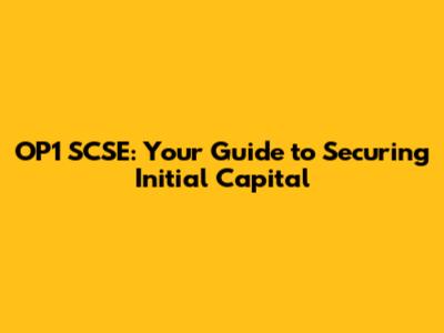 OP1 SCSE: Unlocking Initial Capital For Success