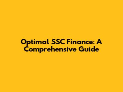 Optimal SSC Finance: A Comprehensive Guide