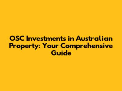 OSC Investments: Your Guide To Australian Property