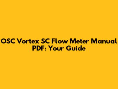 OSC Vortex SC Flow Meter Manual PDF: Your Guide