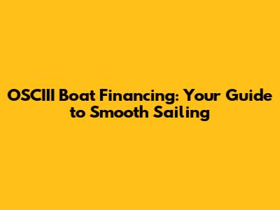 OSCIII Boat Financing: Your Guide To Smooth Sailing