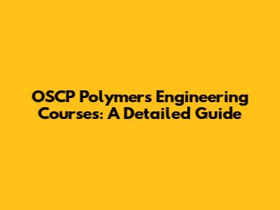 OSCP Polymers Engineering Courses: A Detailed Guide