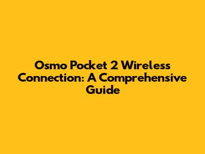 Osmo Pocket 2 Wireless Connection: A Comprehensive Guide