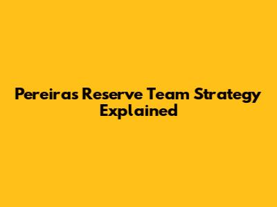 Pereira's Reserve Team Strategy Explained