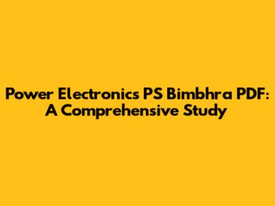 Power Electronics PS Bimbhra PDF: A Comprehensive Study
