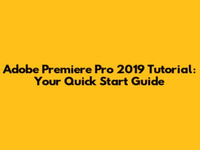 Premiere Pro 2019: Your Quick Start Tutorial