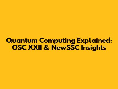 Quantum Computing Explained: OSC XXII & NewSSC Insights