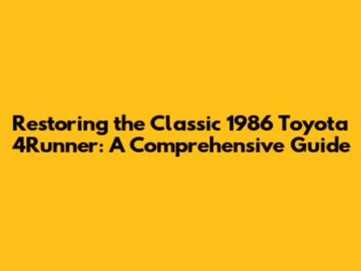 Restoring The Classic 1986 Toyota 4Runner: A Comprehensive Guide