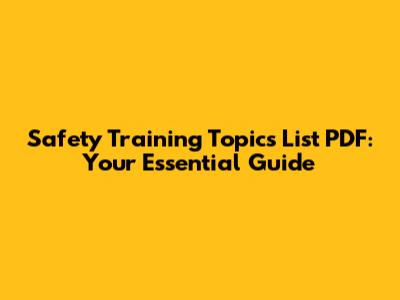 Creating Your Safety Training Topics List PDF