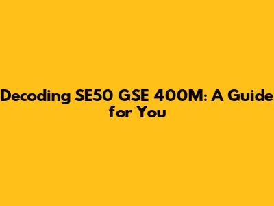 SE50 GSE 400M: Decoding Your Equipment's Code