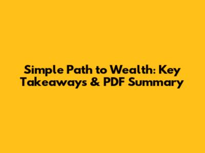 Simple Path To Wealth: Key Takeaways & PDF Summary