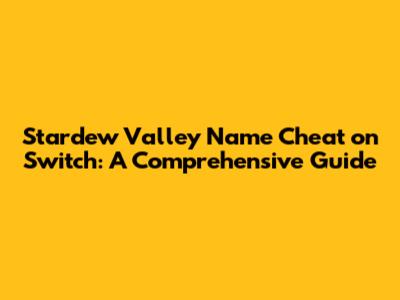 Stardew Valley Name Cheat On Switch: A Comprehensive Guide