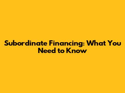 Subordinate Financing: What You Need To Know