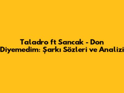 Taladro Ft Sancak - Don Diyemedim: Şarkı Sözleri Ve Analizi