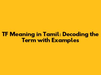 TF Meaning In Tamil: Decoding The Term With Examples
