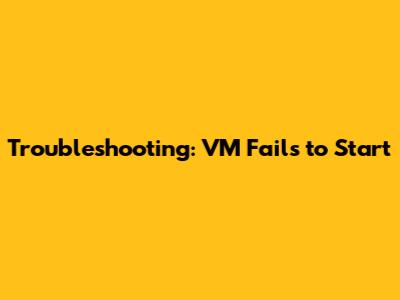 Troubleshooting: VM Fails To Start