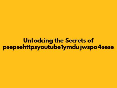 Unlocking The Secrets Of Psepsehttpsyoutube1ymdujwspo4sese