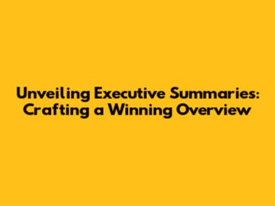 Unveiling Executive Summaries: Crafting A Winning Overview