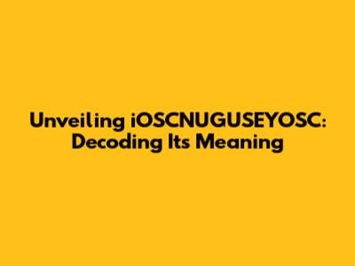 Unveiling IOSCNUGUSEYOSC: Decoding Its Meaning