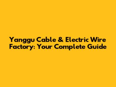 Yanggu Cable & Electric Wire Factory: Your Complete Guide